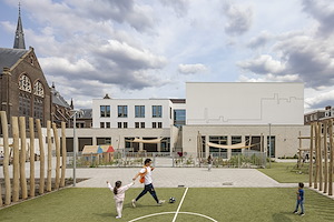 In Den Haag is naar ontwerp van DP6 de basisschool Heilig Hart gerenoveerd en uitgebreid met nieuwbouw.