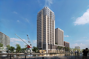 De bouw van het Haagse project De Havenmeesters is gestart. In de twee woontorens, ontworpen door Kampman Architecten zullen 242 betaalbare woningen gerealiseerd worden.