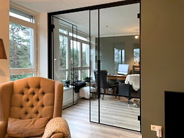 Glazen deur met vintage uitstraling. Optimaliseert licht, zichtlijnen en is volledig aanpasbaar naar uw wensen. |