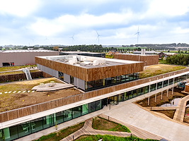 De innovatieve Alu-hout vliesgevels van Alwiti geven het geheel een moderne, elegante uitstraling. Duurzaam, stijlvol en toekomstbestendig. |