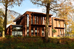 Voor deze Hospice in Egmond aan Zee is gebruik gemaakt van Fraké Noir gevelbekleding behandeld met een voorvergrijzer en brandvertrager. |