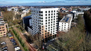 Winnaar nationale houtbouwprijs 2024, het duurzame prefab geconstrueerde appartementencomplex in Amsterdam is gerealiseerd met Vuré Noir |
