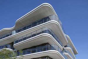 In Zaandam biedt de Catharinatoren een vernieuwende woonkwaliteit door het toepassen van geluidwerende balkonbeglazing Proline van Solarlux. |