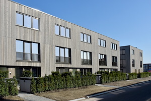 Voor dit appartementencomplex in Hendrik Ido Ambacht is gebruik gemaakt van Oregon Pine gevelbekleding van Houthandel Van Dam |