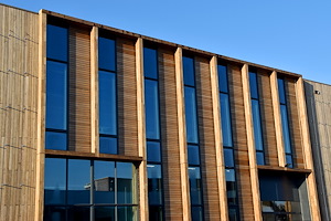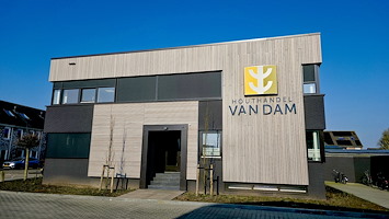 Voor de renovatie van het kantoorpand van Houthandel Van Dam is gekozen voor duurzaam biobased Fraké Noir gevelbekleding en Noir FIX-CLIP |