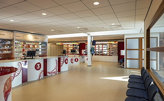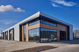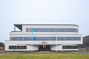 Nieuw Grovet-pand Soesterberg: afgeronde vormen, veel glas en SAPA-profielen geven licht, strakke uitstraling en zichtlocatie aan A28. |