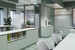 Flexibele vergaderruimtes in HNK Amsterdam Sloterdijk, gerealiseerd met mobiele wanden van Breedveld Wanden B.V. |