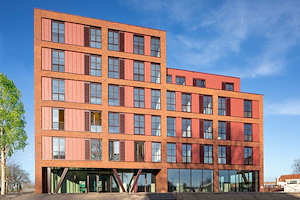 Voor dit appartementencomplex dat wordt gerealiseerd in Nijmegen is gebruik gemaakt van Obèche Noir gevelbekleding |