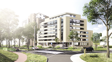 Aan de Dennenlaan in Veenendaal verrijzen 64 sociale huurappartementen, verdeeld over twee woongebouwen. |