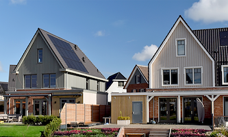 Woonwijk Tuindershof in Pijnacker met gevels van Vuré Noir®, duurzaam thermisch gemodificeerd vurenhout met natuurlijke uitstraling. |